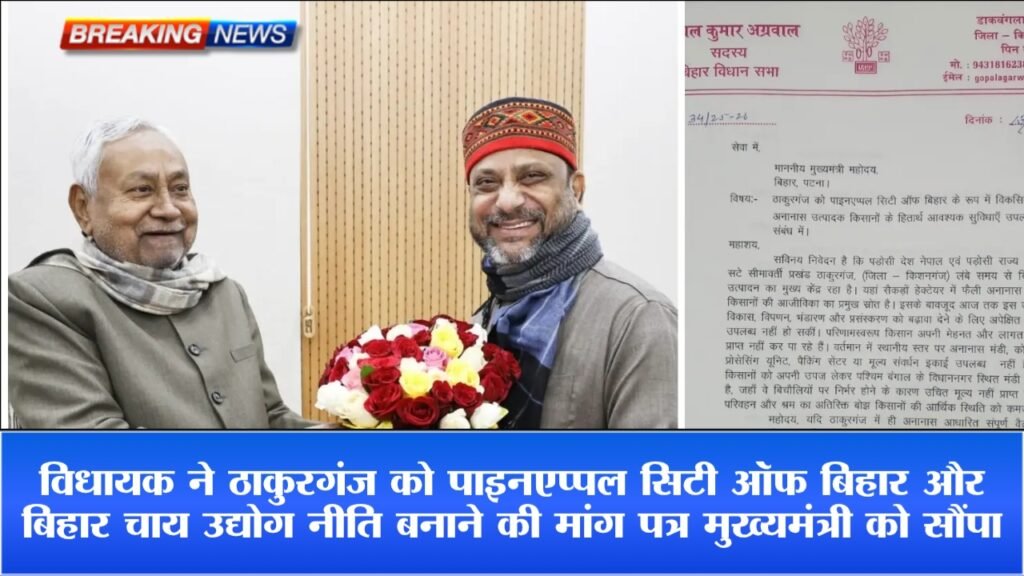 विधायक गोपाल अग्रवाल ने मुख्यमंत्री नीतीश कुमार को दिए मांग पत्र में ठाकुरगंज की इन मांगों को लिखा :